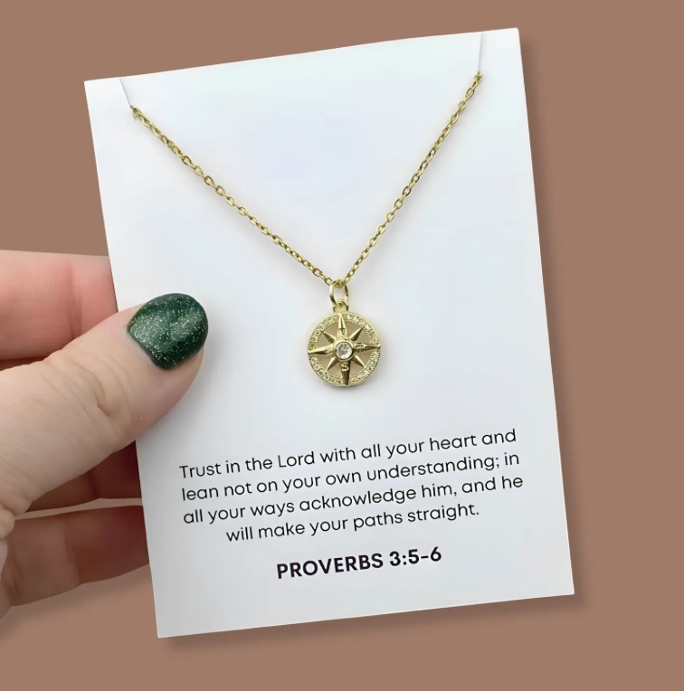 Gold Pave Compass Charm Necklace | Christian Jewelry